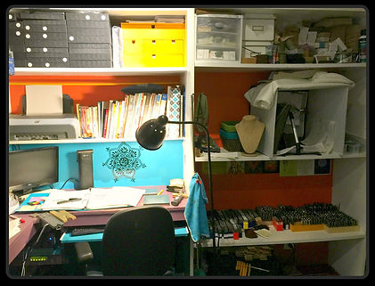 The Copper Paisley studio space. This is where the creative magic happens. Turn up the music and go to work. Often times, I can be found working at 3 am. Hammering, forging, soldering, polishing away on orders. Yes, I cleaned the studio for the photos. It's never this clean.